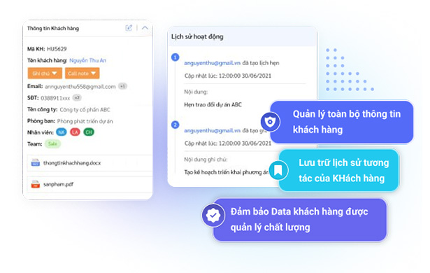 - Lưu trữ lịch sử chăm sóc và tương tác của từng khách hàng