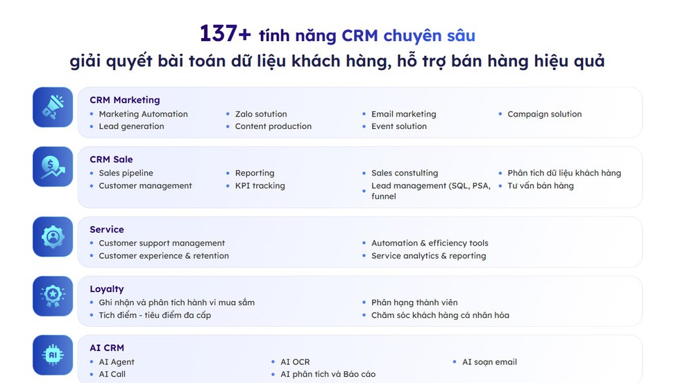 - Quản lý khách hàng theo mối quan hệ, không chỉ theo giao dịch