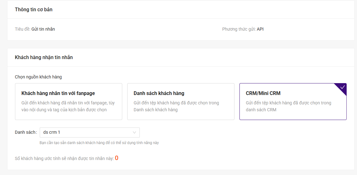 - Xem trước số khách hàng ước tính sẽ nhận được tin nhắn