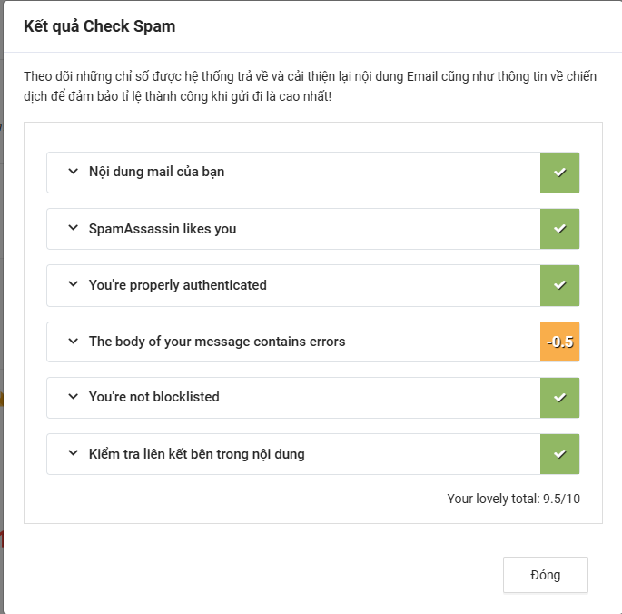 Quét nội dung email và phát hiện các yếu tố dễ vào Spam.