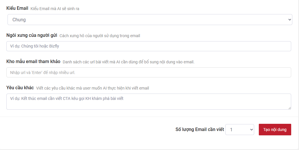 AI Tạo Nội dung Email Campaign - Tạo nội dung bằng AI theo đúng yêu cầu, đúng cấu trúc, đúng ngữ cảnh người dùng
