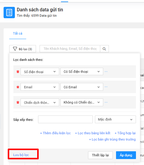 Lưu trữ bộ lọc: Giúp doanh nghiệp đưa ra đúng thông điệp vào đúng thời điểm cho từng nhóm đối tượng cụ thể.