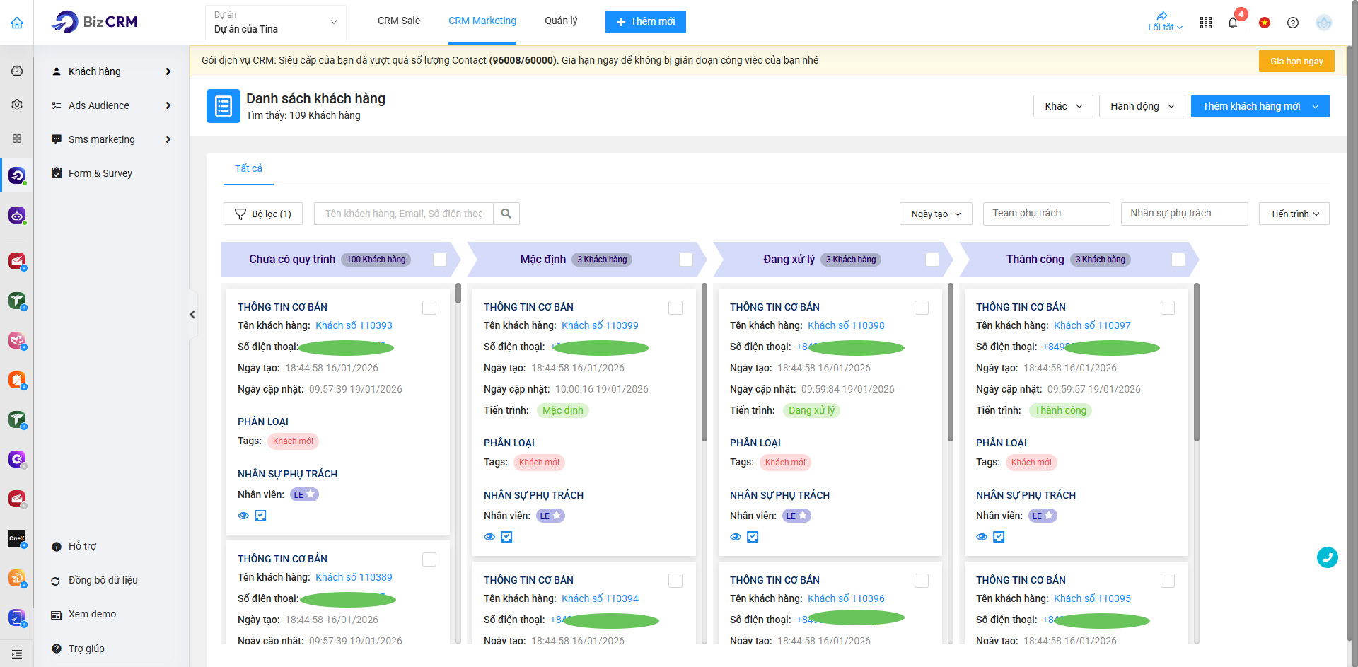 BizCRM hỗ trợ xây dựng phân khúc khách hàng động dựa trên hành vi, lịch sử tương tác và mức độ quan tâm, giúp triển khai nội dung và thông điệp phù hợp cho từng nhóm khách hàng cụ thể.