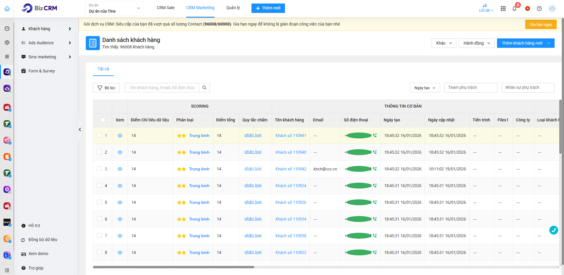 BizCRM hỗ trợ chấm điểm khách hàng dựa trên dữ liệu và hành vi, giúp ưu tiên nguồn lực cho các khách hàng có khả năng chuyển đổi cao.