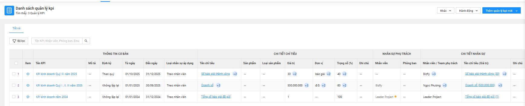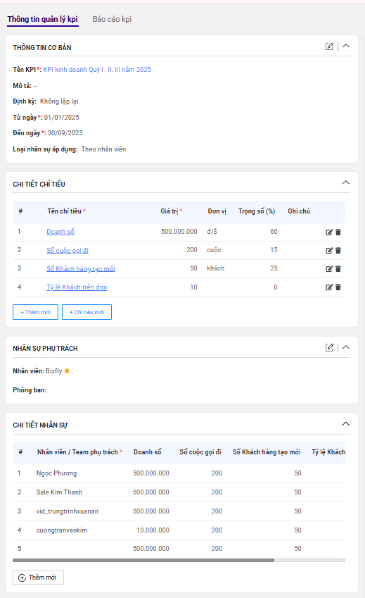 Phân bổ linh hoạt: Giao chỉ tiêu theo từng cá nhân, phòng ban và theo các mốc thời gian (tháng, quý, năm).