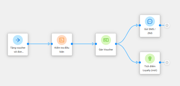 Phát hành Voucher tự động: Kích thích doanh thu bằng cách tự động gửi mã giảm giá, ưu đãi vào đúng các mốc quan trọng (sinh nhật, lễ tết hoặc sau khi hoàn thành đơn hàng).