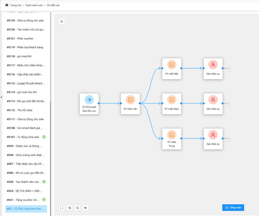 Phân bổ nhân sự thông minh: Tự động gán khách hàng cho nhân viên Sales/CS phù hợp nhất dựa trên các quy tắc: vòng tròn (round-robin), khu vực địa lý hoặc năng lực chuyên môn.