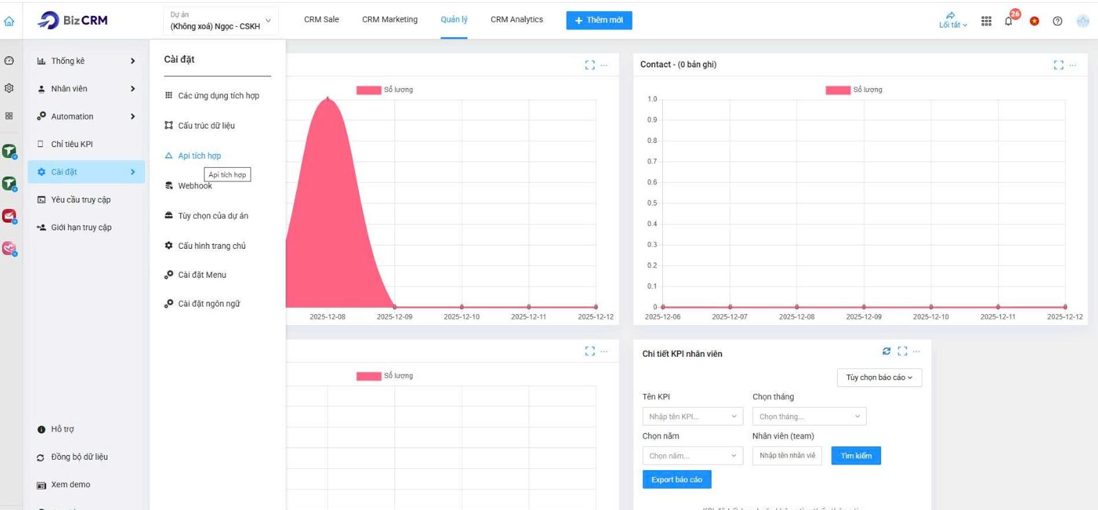 Truy cập menu: Quản lý → Cài đặt → API tích hợp.