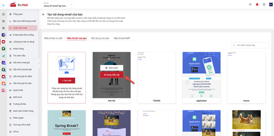 Bước 5: Chọn mẫu email mà người dùng muốn sử dụng cho chiến dịch của mình và bấm Sử dụng mẫu này