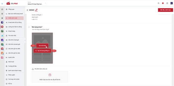 Bước 4: Chọn Tạo nội dung để thêm nội dung email đã thiết lập từ trước