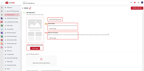 Bước 7: Sau khi đã thêm đầy đủ các thông tin như trên, người dùng có thể kiểm tra chất lượng email của mình bằng những công cụ đánh giá khách quan của Bizfly