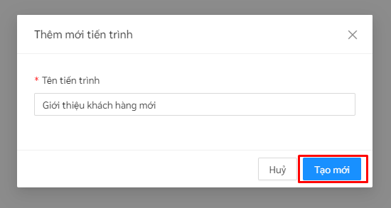 Bước 2: Nhấn Thêm mới tiến trình, nhập Tên tiến trình và nhấn Tạo mới