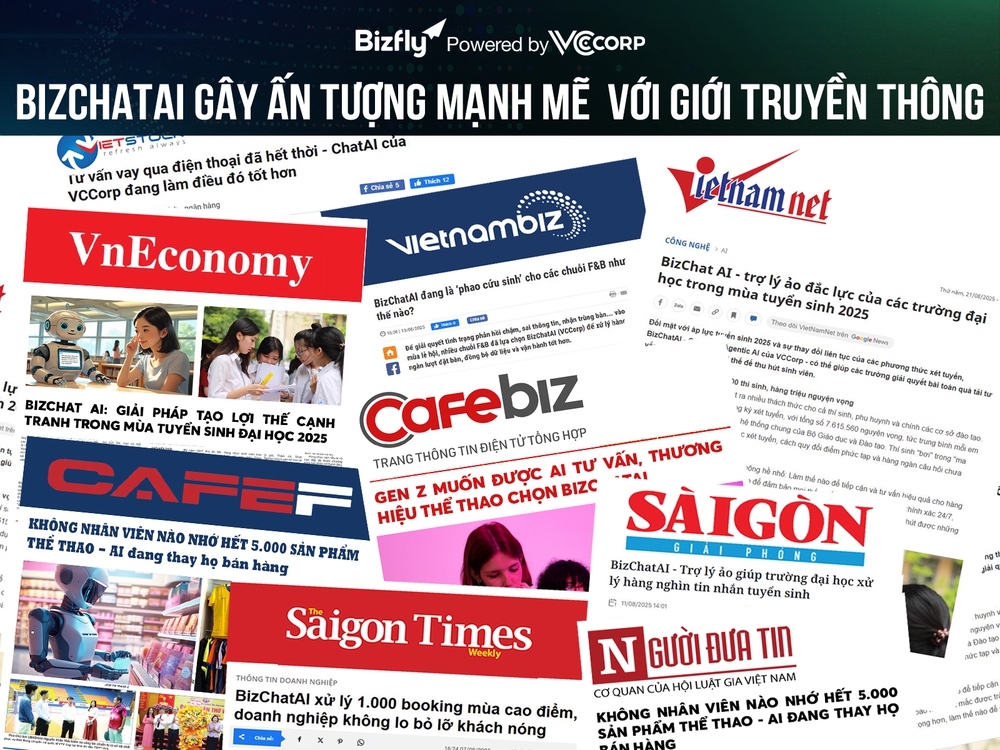 Trong tháng 9, cái tên BizChatAI - Giải pháp AI Chat Agent do Bizfly VCCorp phát triển liên tục xuất hiện trên hàng loạt đầu báo lớn như Vneconomy, CafeF, ICTNews, Dân Trí, Vietnamnet, CafeBiz,.... Từ những bài viết chuyên sâu về xu hướng ứng dụng AI trong doanh nghiệp, cho đến các phân tích về sự khác biệt giữa Chatbot và AI Agent, tất cả đều cho thấy sự quan tâm mạnh mẽ của thị trường công nghệ Việt Nam dành cho một sản phẩm “made by VCCorp”.