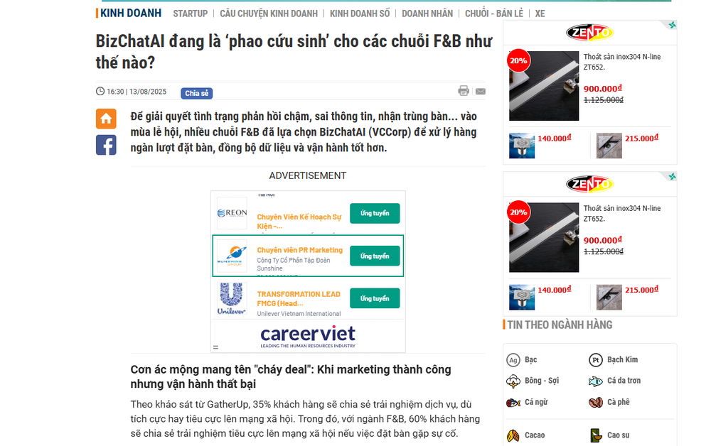 VietnamBiz cũng đề cập góc nhìn tương tự trong bài “BizChatAI đang là ‘phao cứu sinh’ cho các chuỗi F&B như thế nào?”.