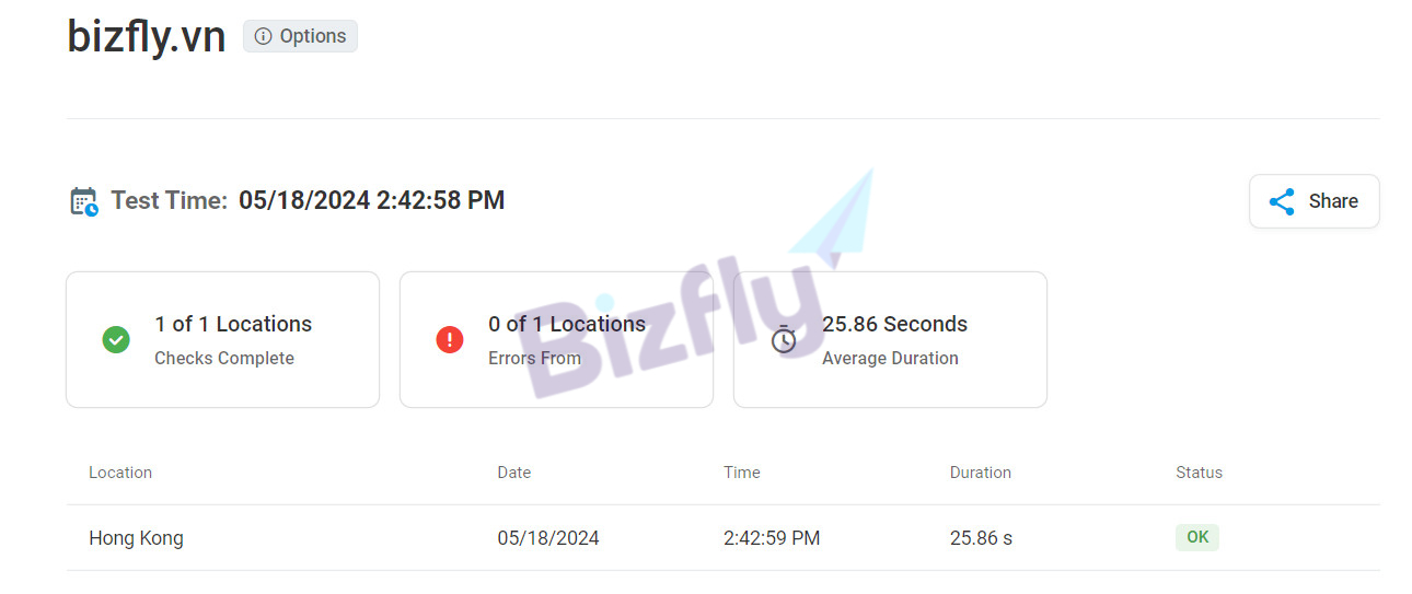 - Bước 2: Tại ô “From Location” chọn “Hong Kong” (vì Hong Kong có vị trí gần Vietnam nhất) Nhập domain tại ô “Enter Host or IP”