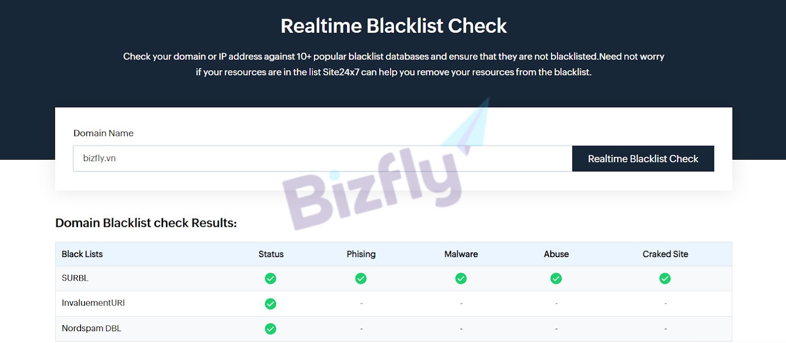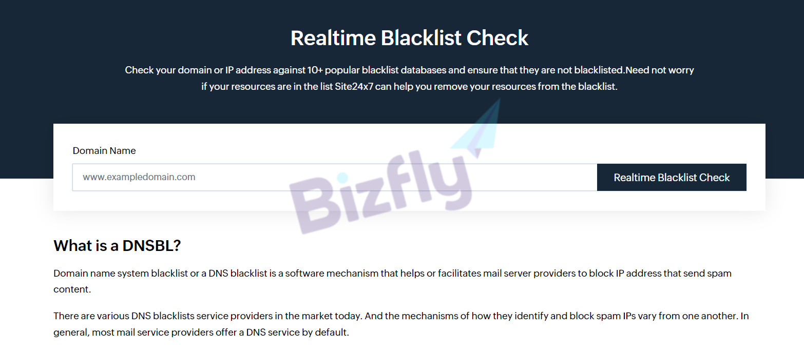 Sử dụng Site24x7 là cách check blacklist domain hiệu quả. Tất cả các gói dịch vụ của Site24x7 đều có bản dùng thử miễn phí 30 ngày và có kiểm tra domain trong danh sách theo thời gian thực.