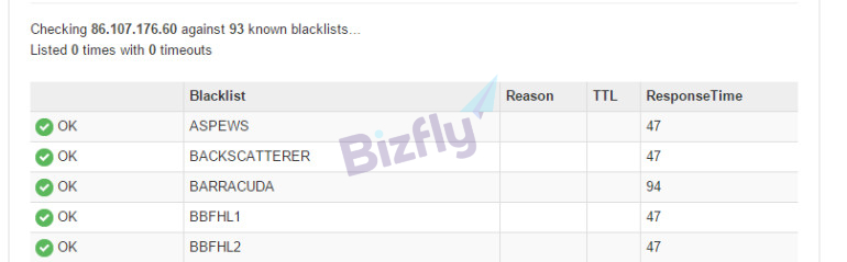 - Bước 3: Nếu cột Status đánh dấu tích xanh nghĩa là domain của doanh nghiệp không nằm trong Blacklist.