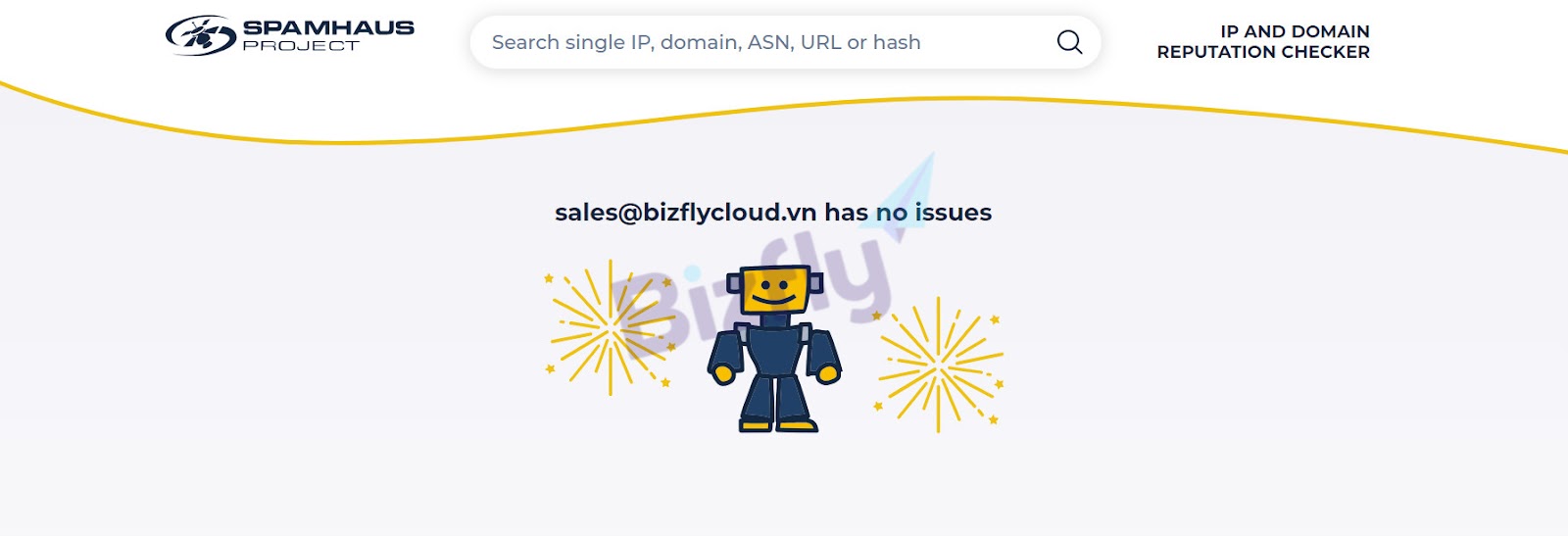 - Bước 3: Xem xét kết quả. Nếu màn hình hiện dòng chữ “tên domain + has no issues” (như hình minh họa) nghĩa là domain của doanh nghiệp không nằm trong danh sách đen.