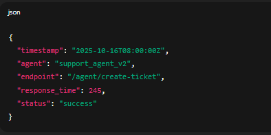| Theo dõi hành vi Agent | Ghi log chi tiết request/response, status code |