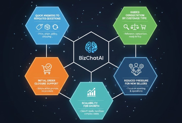 - Giảm áp lực cho người mới: Người bán có thể tập trung tìm nguồn hàng, tối ưu sản phẩm và vận hành đơn, trong khi BizChatAI xử lý phần hội thoại cơ bản.