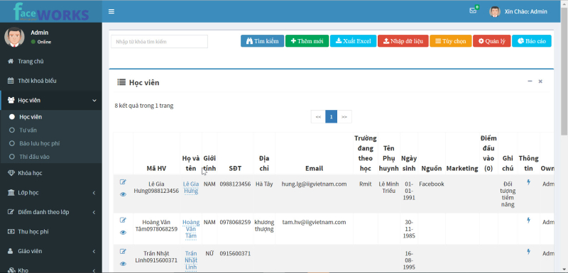 Quản lý học phí, công nợ, hỗ trợ in hóa đơn. - Quản lý lịch giảng dạy, phân công giáo viên.