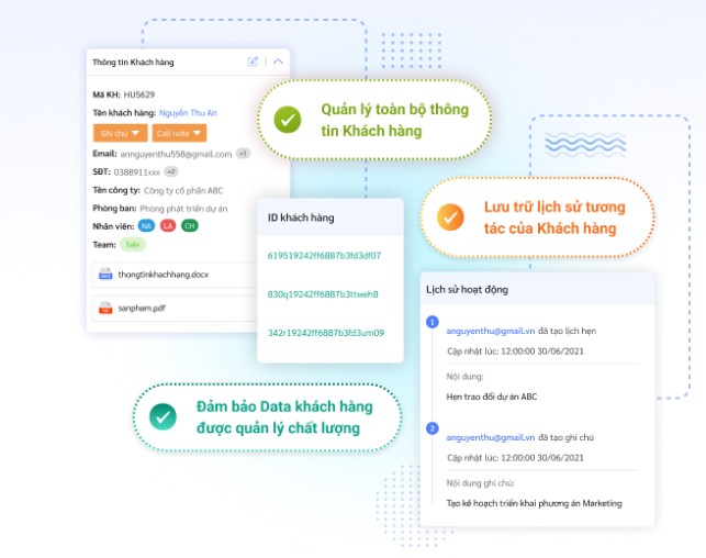 - Quản lý dữ liệu tập trung: Loại bỏ tình trạng dữ liệu khách hàng nằm rải rác ở Excel hay sổ tay, giúp bảo mật và tránh thất thoát dữ liệu khi nhân viên nghỉ việc.