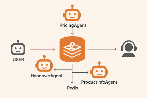 Các agent được thiết kế để trở nên stateless. Toàn bộ state của cuộc hội thoại (user ID, các thông tin đã thu thập, lịch sử chat) được lưu vào một kho lưu trữ chung như Redis.