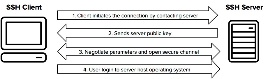 Hình bên dưới trình bày quy trình thiết lập đơn giản hóa của kết nối shell an toàn.