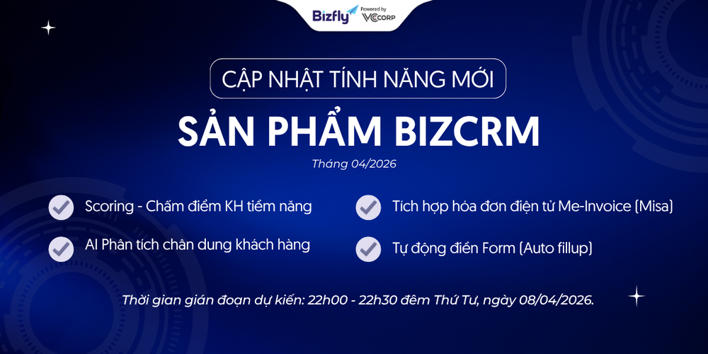 Nhằm nâng cao hiệu quả quản trị và tối ưu hóa quy trình bán hàng cho các doanh nghiệp lớn, Bizfly chính thức phát hành bản cập nhật hệ thống BizCRM Tháng 4/2026. Bản nâng cấp lần này tập trung vào việc ứng dụng AI chuyên sâu, chuẩn hóa đánh giá dữ liệu và tự động hóa các bước nghiệp vụ phức tạp, giúp bộ máy vận hành chuyên nghiệp và chính xác hơn.