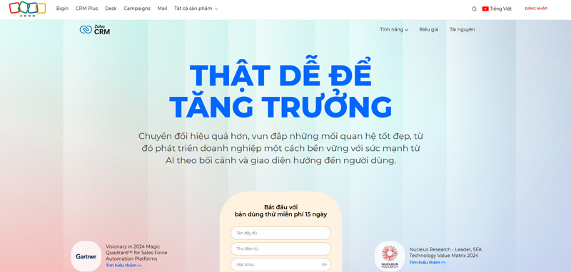 Zoho CRM đặc biệt phù hợp với các doanh nghiệp quy mô lớn, công ty đa quốc gia hoặc startup công nghệ có nhu cầu triển khai marketing automation chuyên sâu và đo lường dữ liệu toàn cầu.