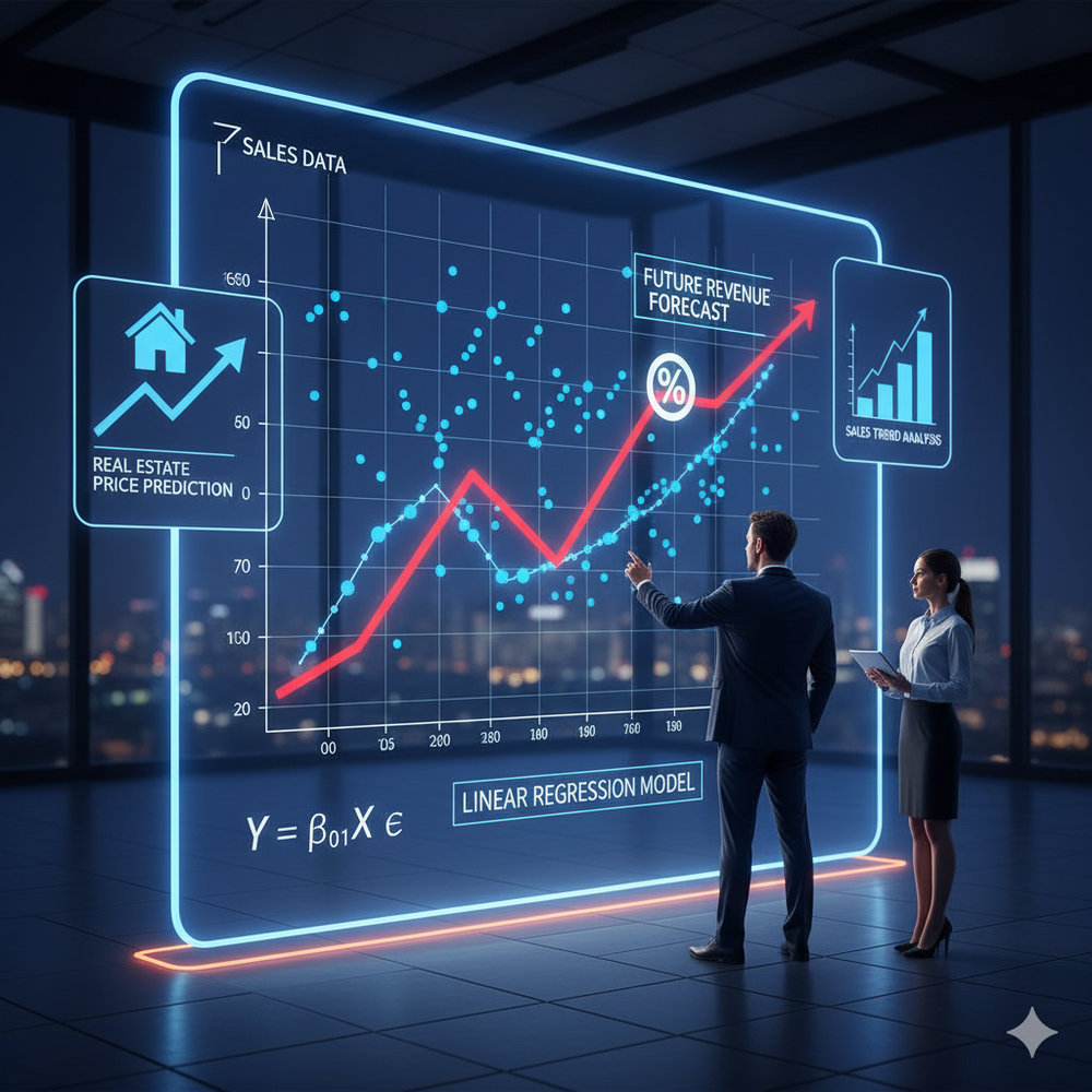 Linear Regression là thuật toán cổ điển nhưng vẫn còn nguyên giá trị trong phân tích dữ liệu. Nó xây dựng mối quan hệ tuyến tính giữa biến độc lập và biến phụ thuộc, cho phép dự đoán giá trị mới dựa trên xu hướng có sẵn. Trong kinh doanh, Linear Regression được dùng để dự báo giá bất động sản hoặc dự đoán doanh thu theo thời gian, với ưu điểm là dễ hiểu và nhanh chóng triển khai.
