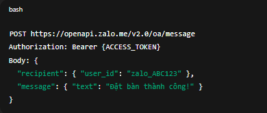 "message": { "text": "Tôi muốn đặt bàn", "msg_id": "12345" },