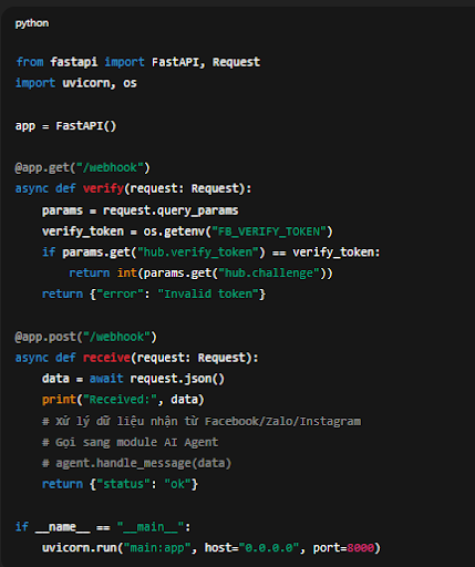 Tích hợp AI Agent vào Facebook, Zalo OA, Instagram bằng FastAPI