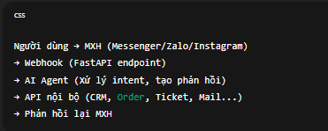 → AI Agent (Xử lý intent, tạo phản hồi)