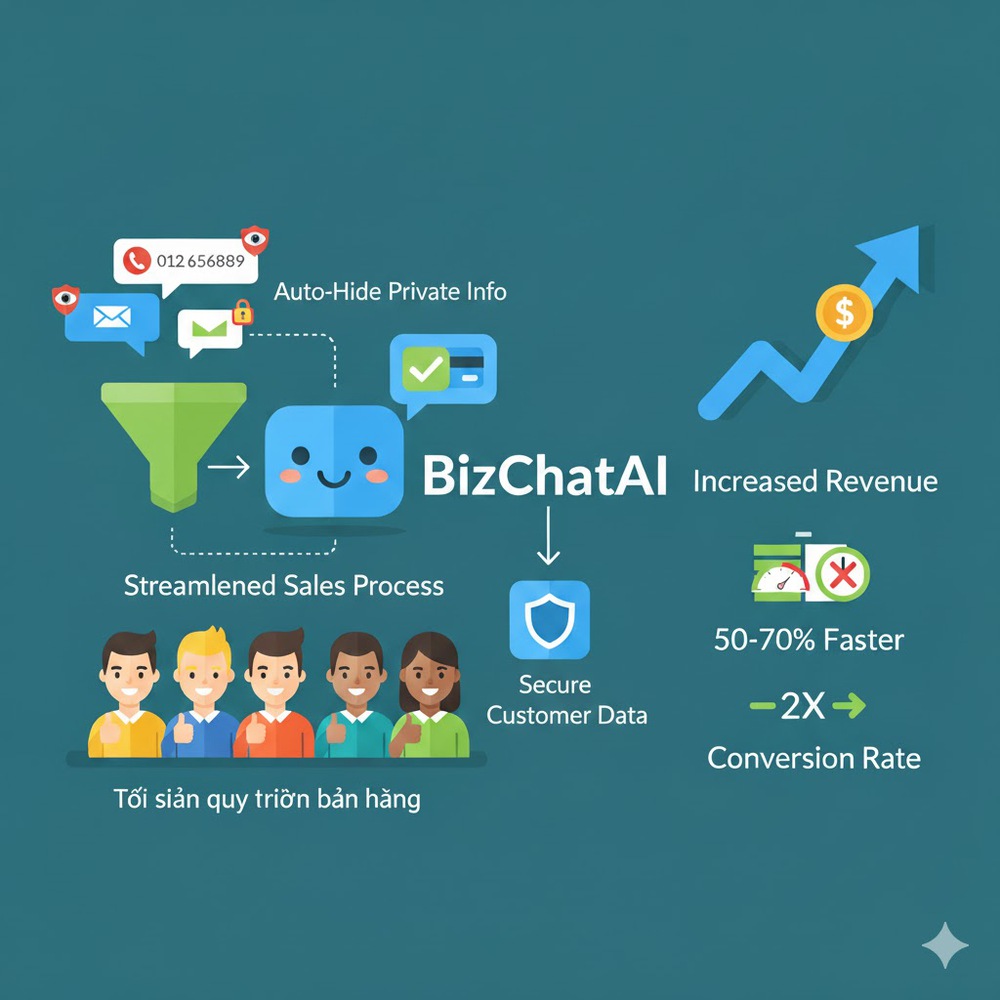 - Chốt đơn nhanh chóng: Với hàng nghìn shop online, BizChatAI đã chứng minh khả năng rút ngắn 50–70% thời gian phản hồi, giúp tăng tỷ lệ chốt đơn lên gấp đôi so với phản hồi thủ công.