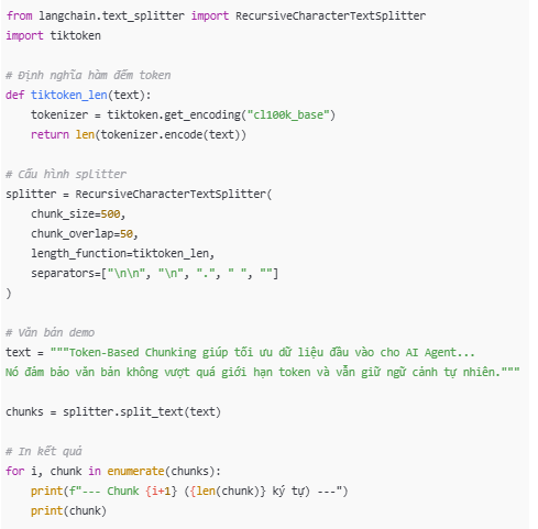 text = """Token-Based Chunking giúp tối ưu dữ liệu đầu vào cho AI Agent...