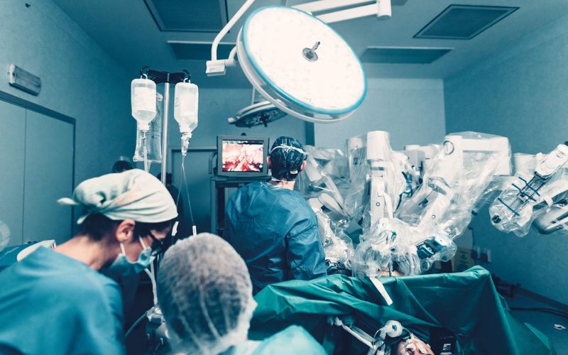 AI tích hợp vào hệ thống robot giúp bác sĩ chuẩn bị, thao tác và giám sát ca mổ chính xác hơn. Robot có thể thực hiện các thao tác tinh vi ở những vị trí khó quan sát, trong khi bác sĩ điều khiển thông qua bảng điều khiển với hình ảnh 3D phóng to. Nhờ vậy, các ca phẫu thuật ít biến chứng, giảm đau sau mổ và rút ngắn thời gian hồi phục.